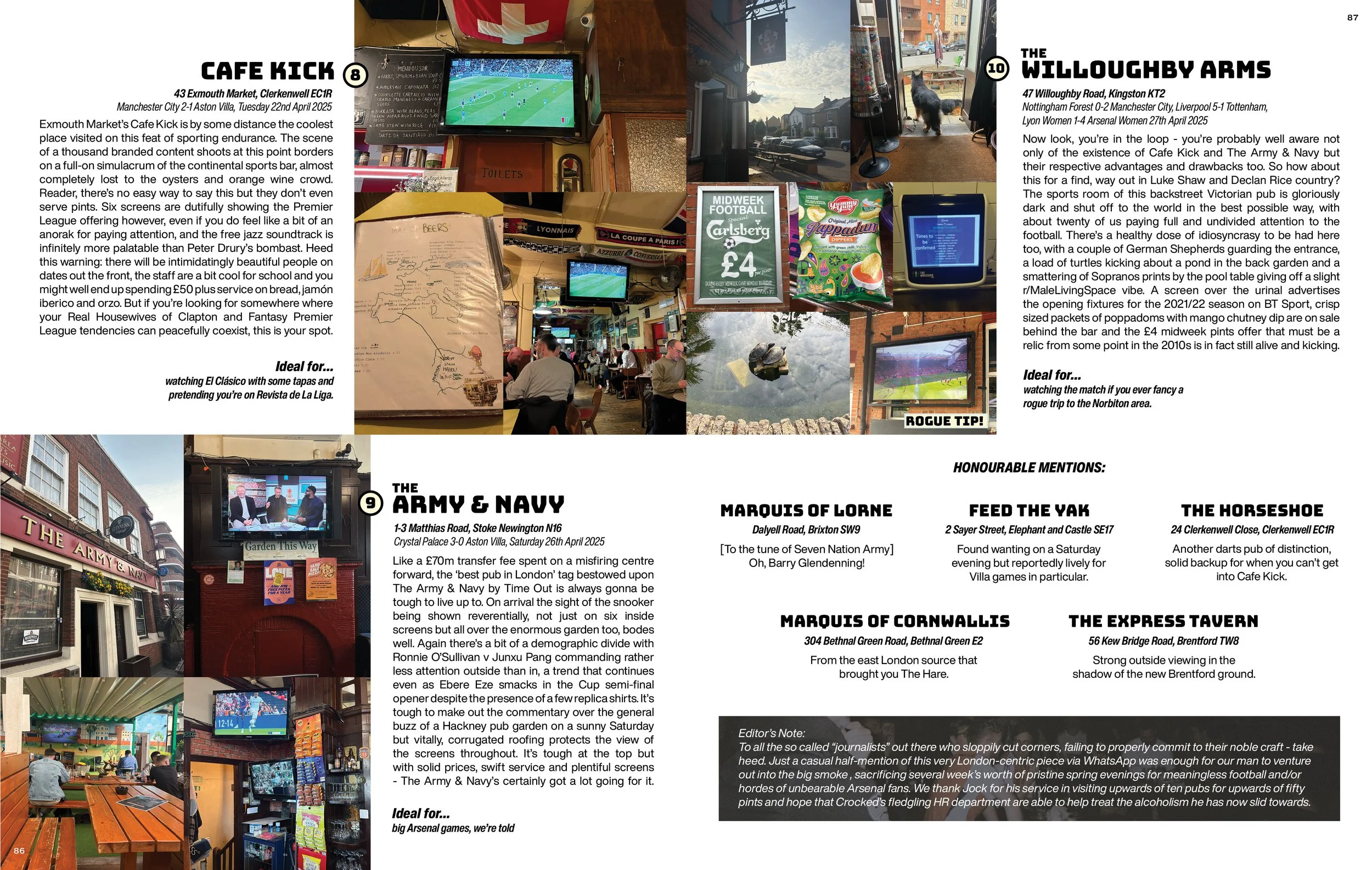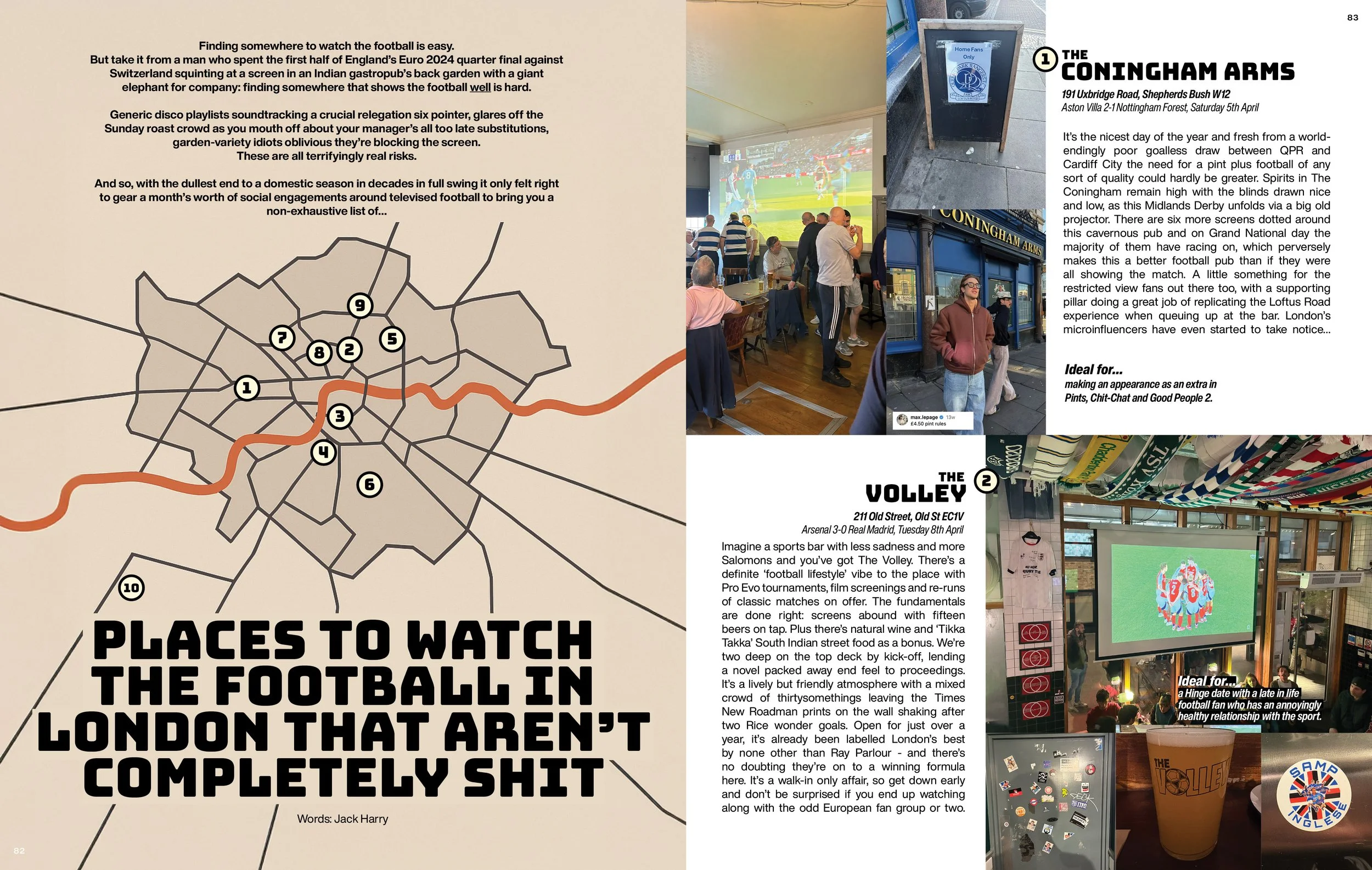 Painstakingly trawling the pubs of London to find out which are actually any good for watching the match in. Buy Issue 1 of Crocked Magazine here.